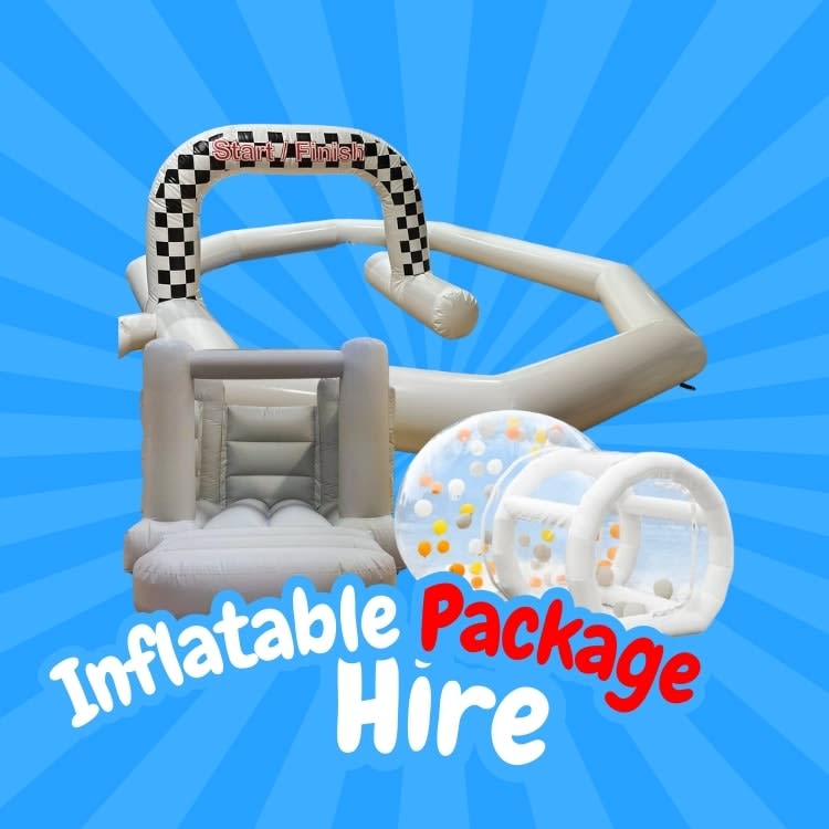 Wedding Inflatable Package Hire | Grey Castle, Race Track & Bubble House