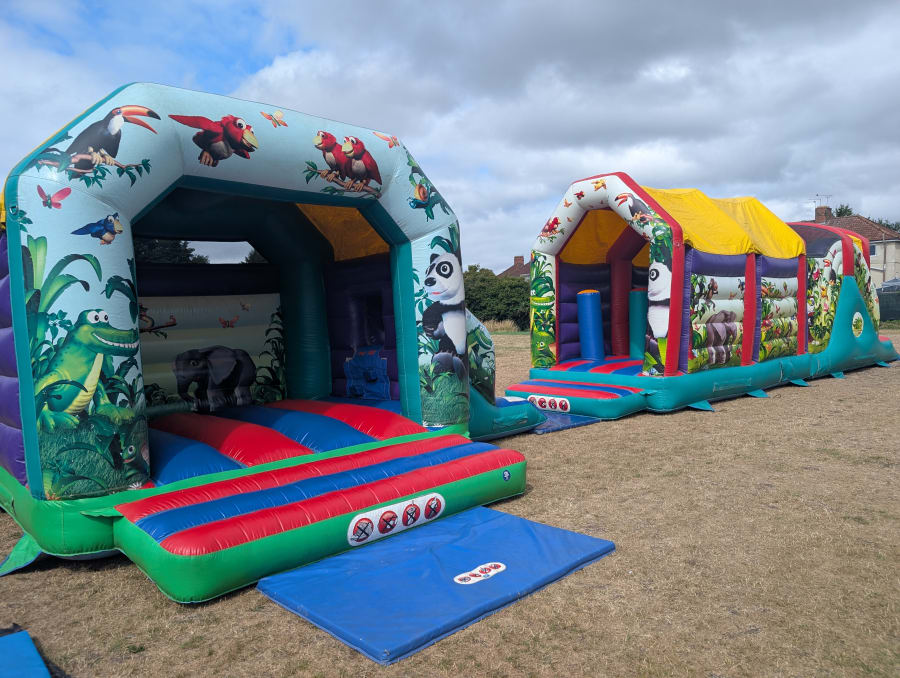 Hire our 40ft jungle assault course for a wild adventure! Bounce, crawl & slide through animal-themed obstacles. Ideal for kids' parties & school fun days.