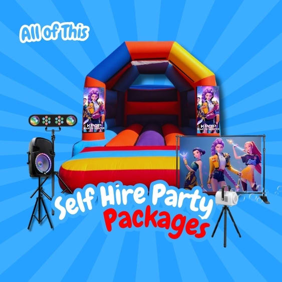 K Pop Demon Hunters Self Hire Party Package | Demon Hunters Bouncy Castle Hire | K Pop Party Bristol | Self Hire Party Packages | Kids Party Hire Bristol | Bouncy Castle and Disco Package | Themed Party Equipment Hire | DIY Party Setup Bristol | Garden Party Packages | Affordable Party Hire Bristol